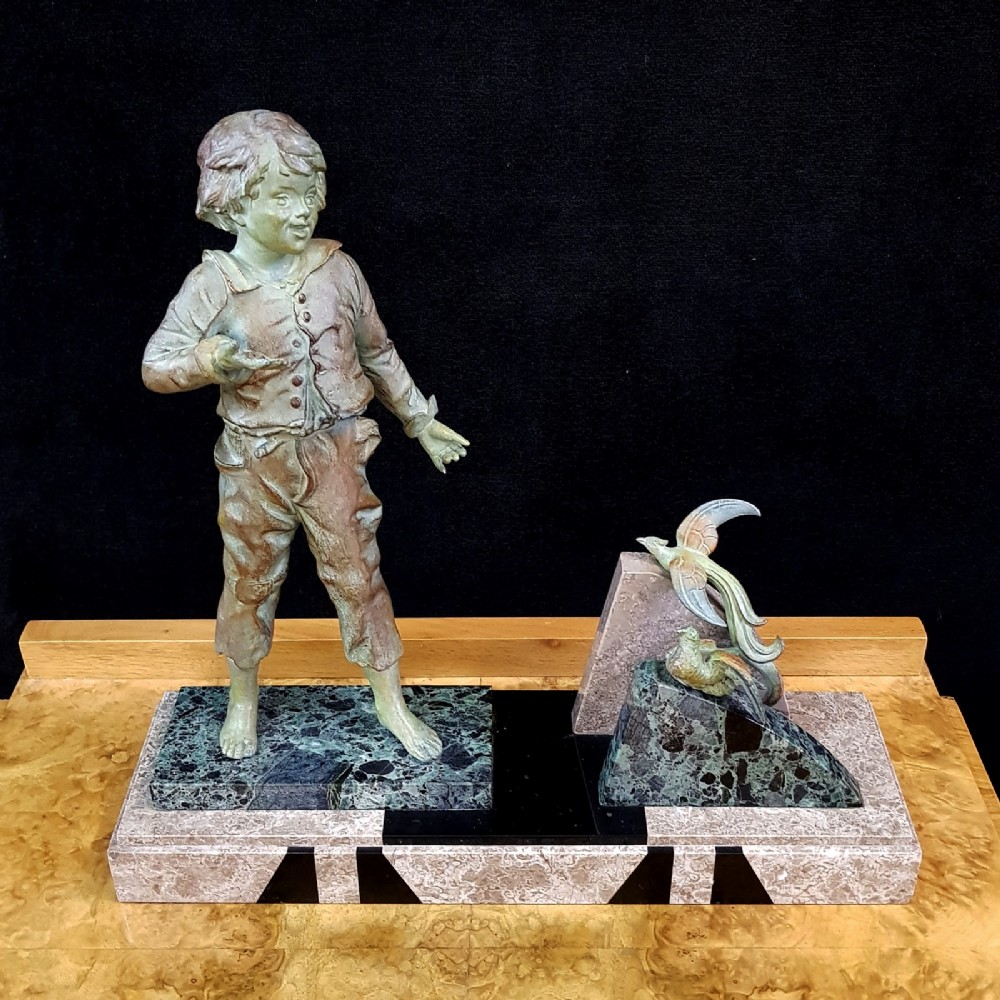 Original Antike Art Deco Figur Junge füttert Vögel original englisch 1930