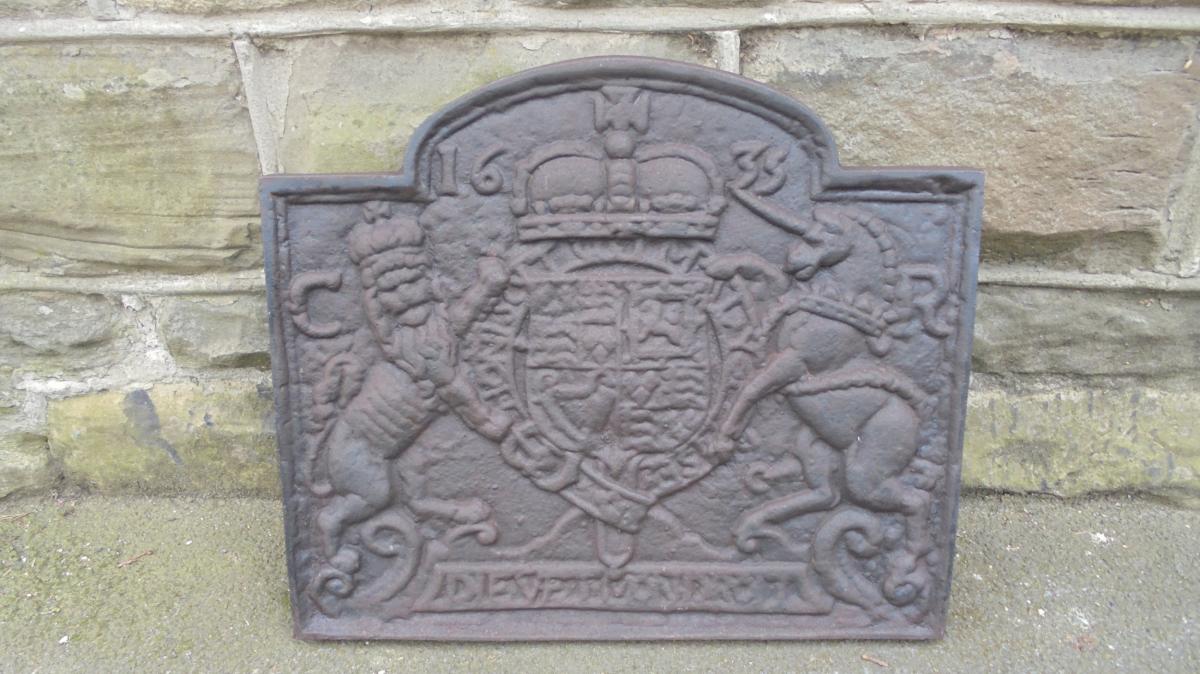 Er ist üppig verziert mit heraldischen Löwen und einem Wappen mit Datum 1635.