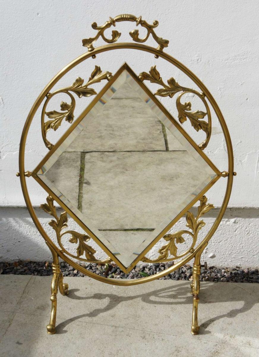 Mirrored brass Feuerschirm Kaminschirm mit Spiegel Messing antik ca. 1910-1920