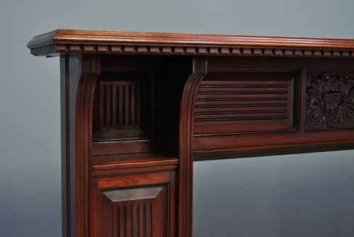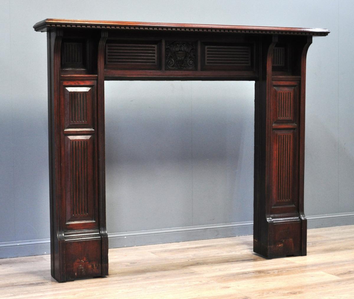 Sehr großes antikes viktorianisch gebeiztes Kaminverkleidungsstück aus Esche