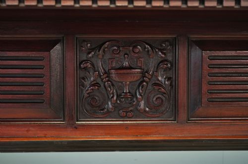 Die Mittelwand des oberen Bereichs ist in der Mitte geschnitzt und an den Seiten mit einem Schilfmuster versehen.