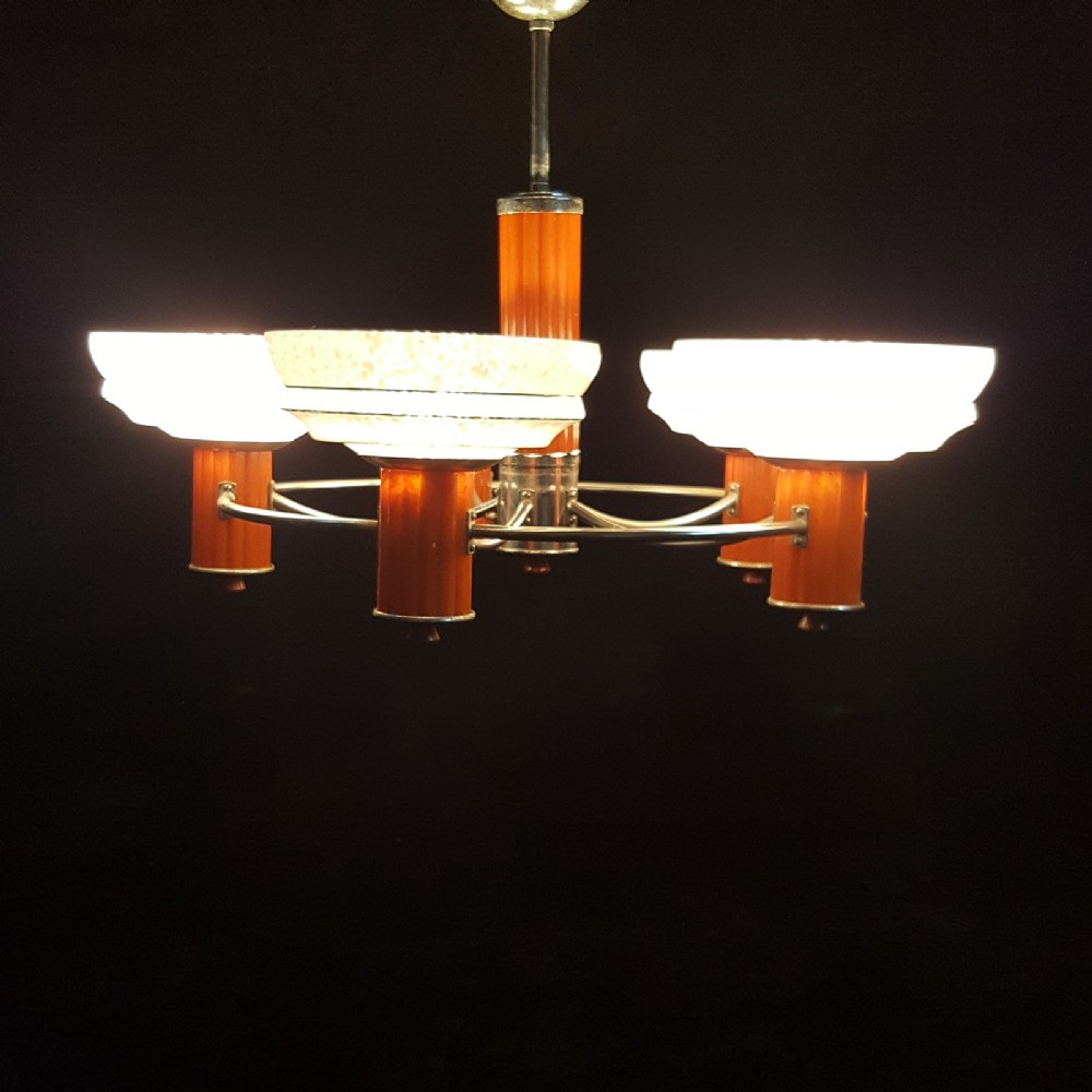 Antike Art Deco Deckenlampe Chrom britisch ca 1930