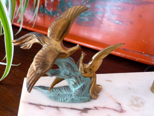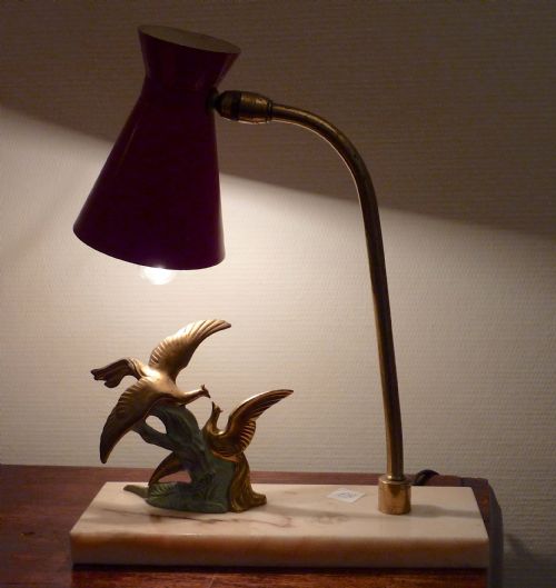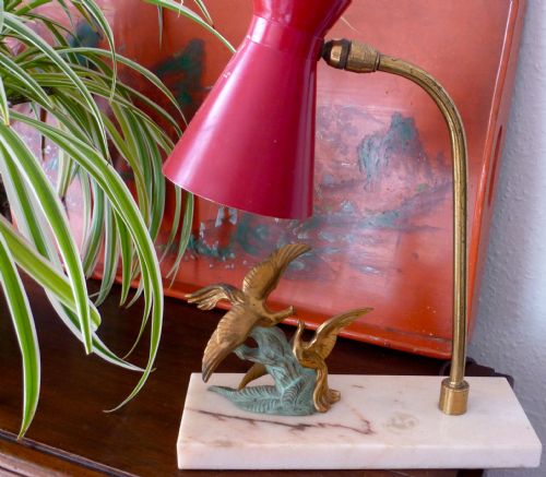 Englische antike Art Deco Tischleuchte Schreibtischlampe Skulptur Toleware Marmor
