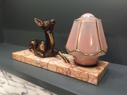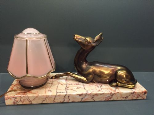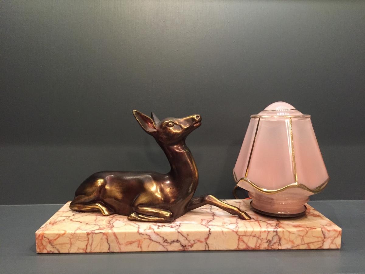 Antike Art Deco Tischlampe Marmor Bronze Figur französisch ca 1930