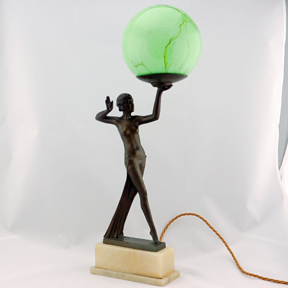 Antike Art Deco Tischlampe Skulptur britisch ca 1930