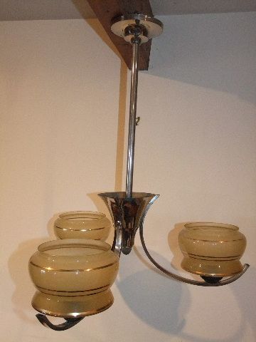 Englische Art Deco Deckenlampe Chrom Hängeleuchte Hängelampe