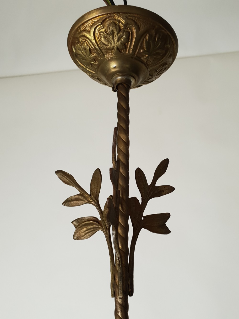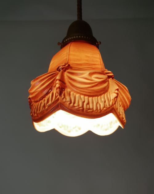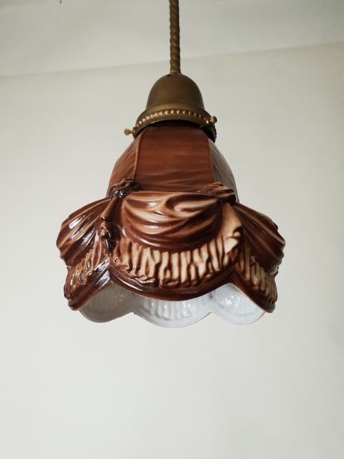 Antike niederländische Deckenlampe Keramik Deckenleuchte vergoldet ca 1910