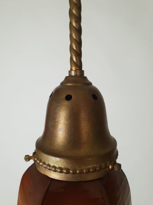 Niederländische Keramik Hängeleuchte Hängelampe vergoldet antik