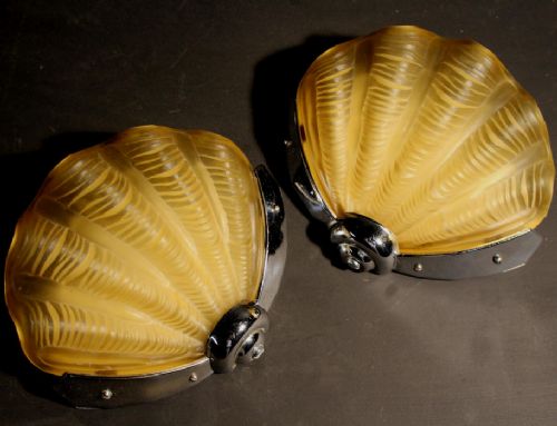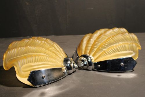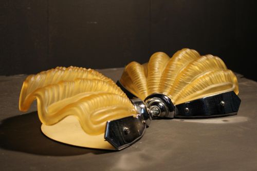 Britische Art Deco Wandlampen Chrom Glas antik ca 1930