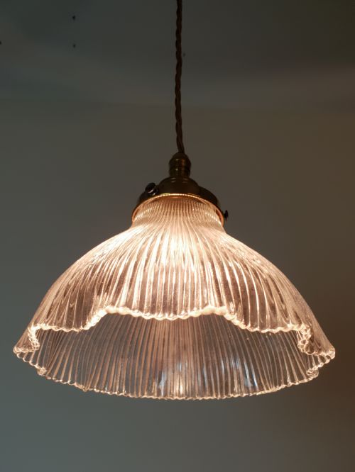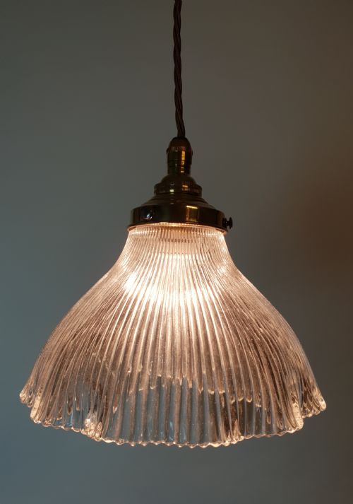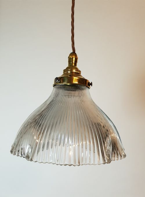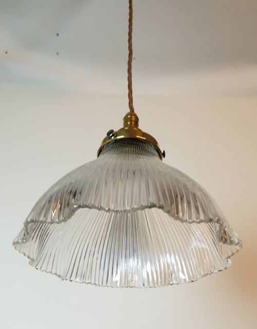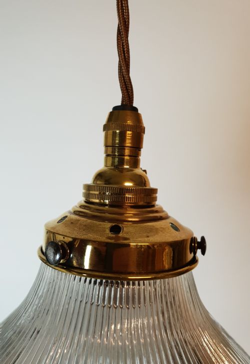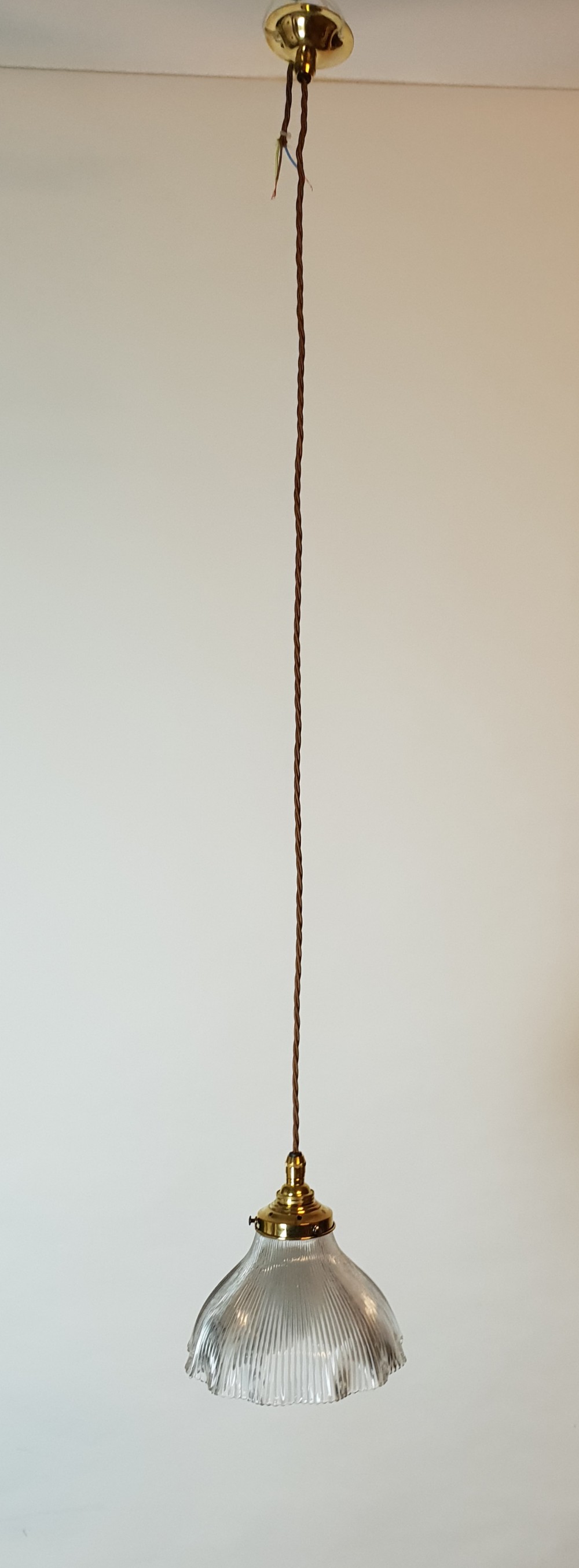 Edwardianische Holophane Deckenlampe Kristall Hängelampe britisch ca 1890