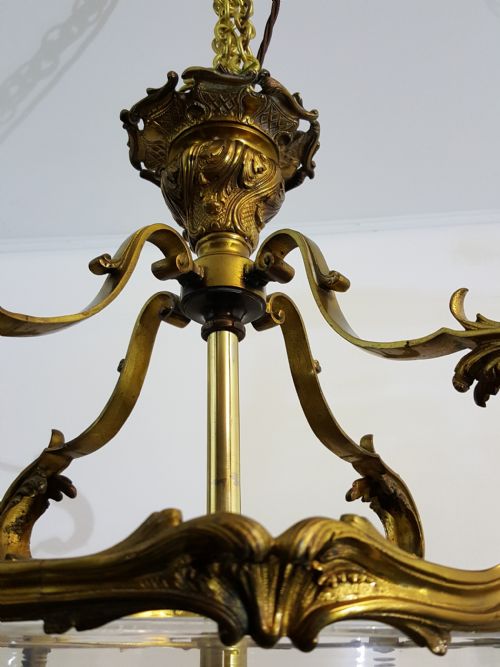 Edwardianische französische Messing Deckenlampe Lampe vergoldet antik ca 1890
