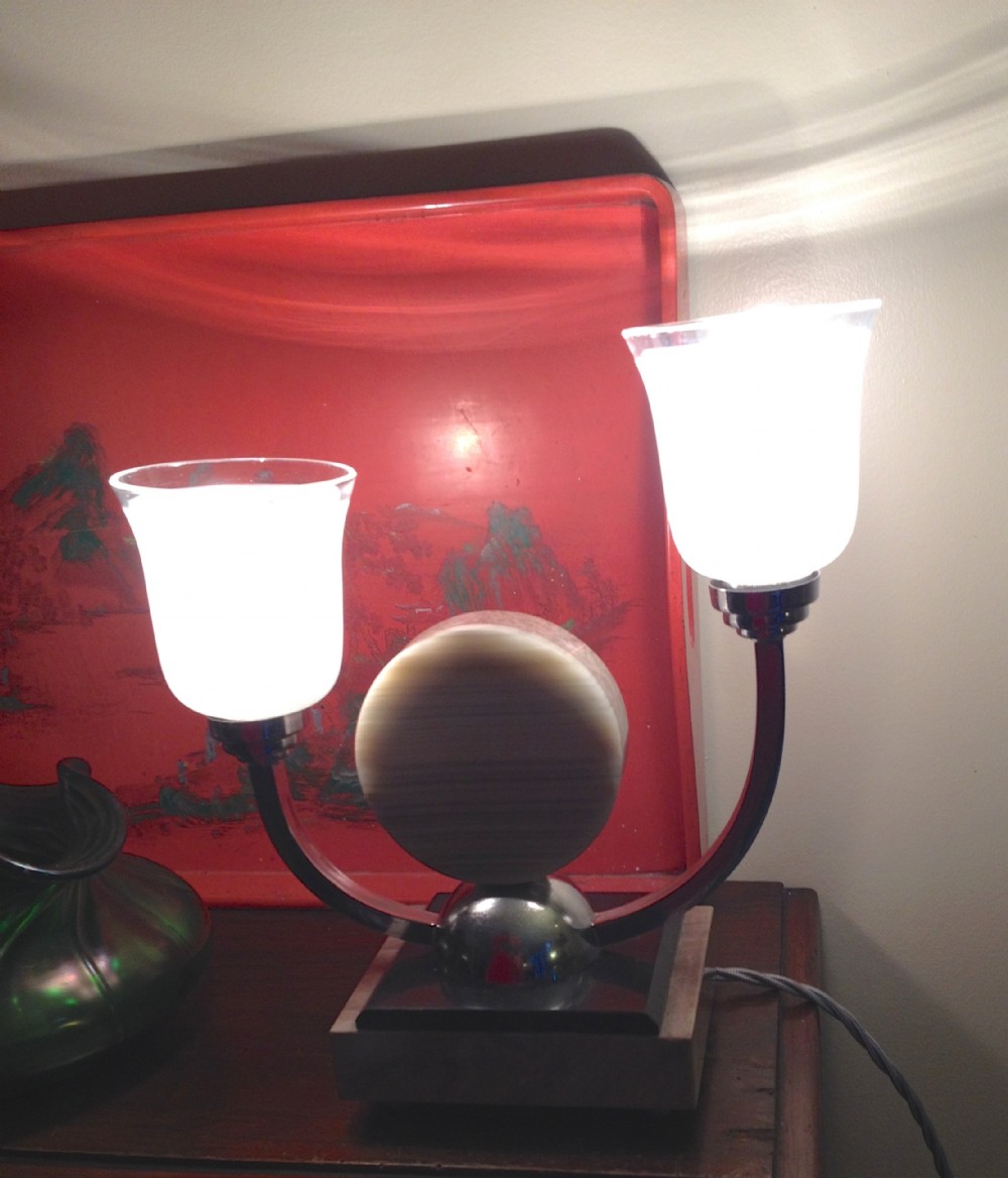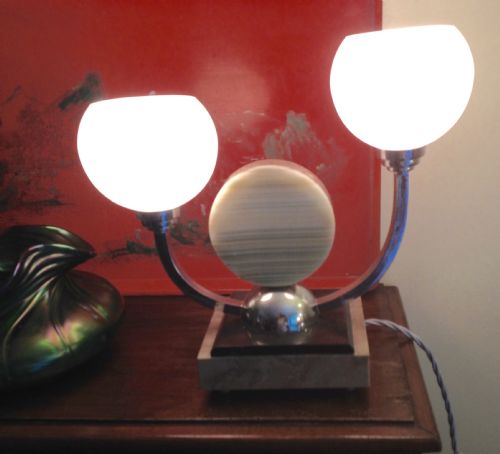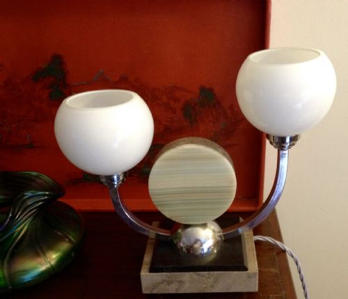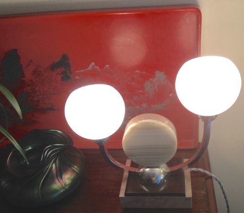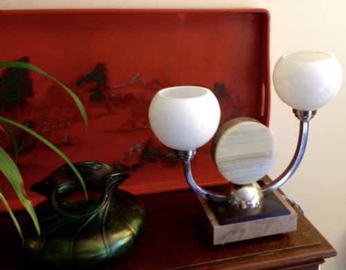 Englische Art Deco Tischlampe Chrom Marmor antik ca 1930