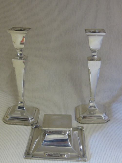 Britische Silber Kerzenhalter original antik mit silbernem Tintenfass