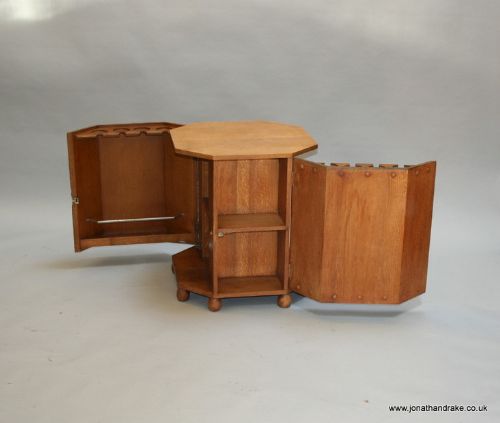 Antiker englischer Art & Crafts Cocktailschrank Eiche Beistelltisch ca 1930