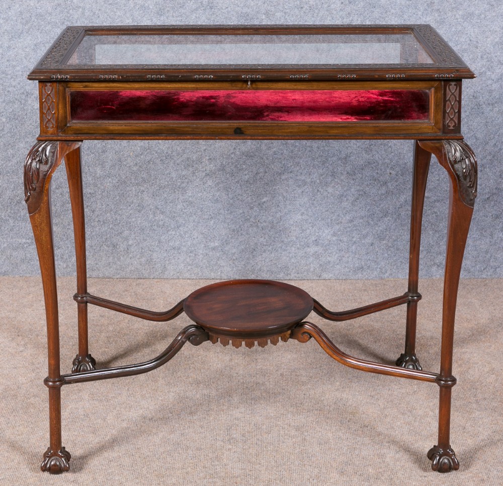 Antiker britischer Bijouterie Beistelltisch Mahagoni Massivholz Vitrine