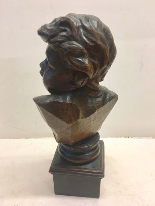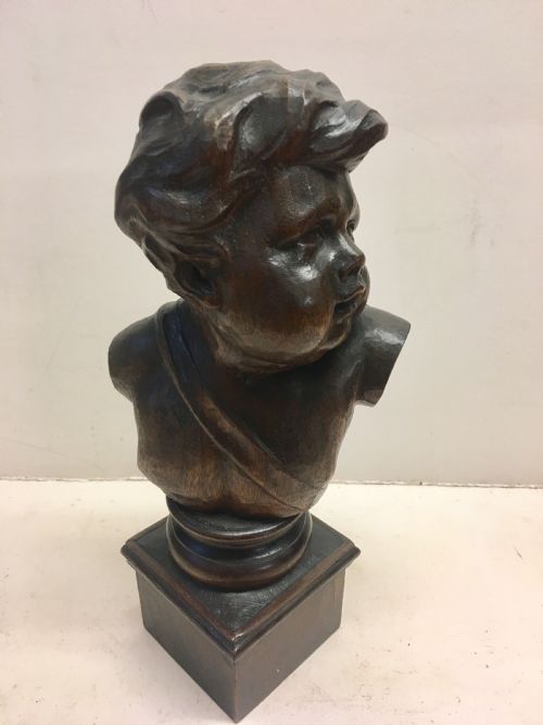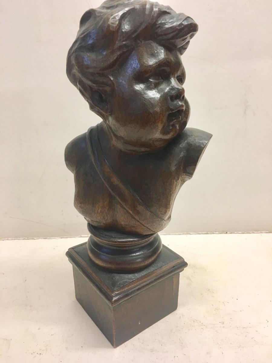 Antike Holzfigur Skulptur Cherub Holz Büste Engel 1850