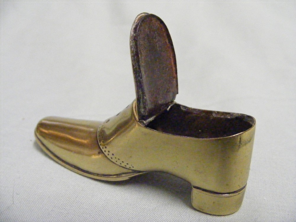 Original britische Messing Dose in Schuhform Tabakdose antik