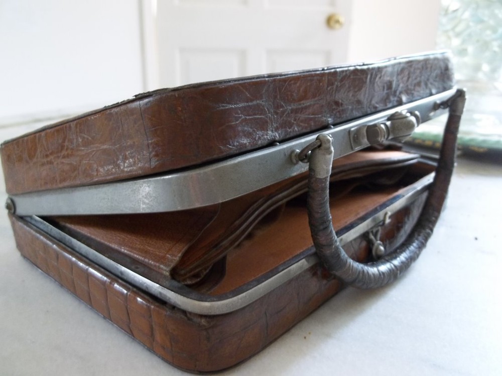Original britische Tasche Krokodil echt antike Rarität englisch
