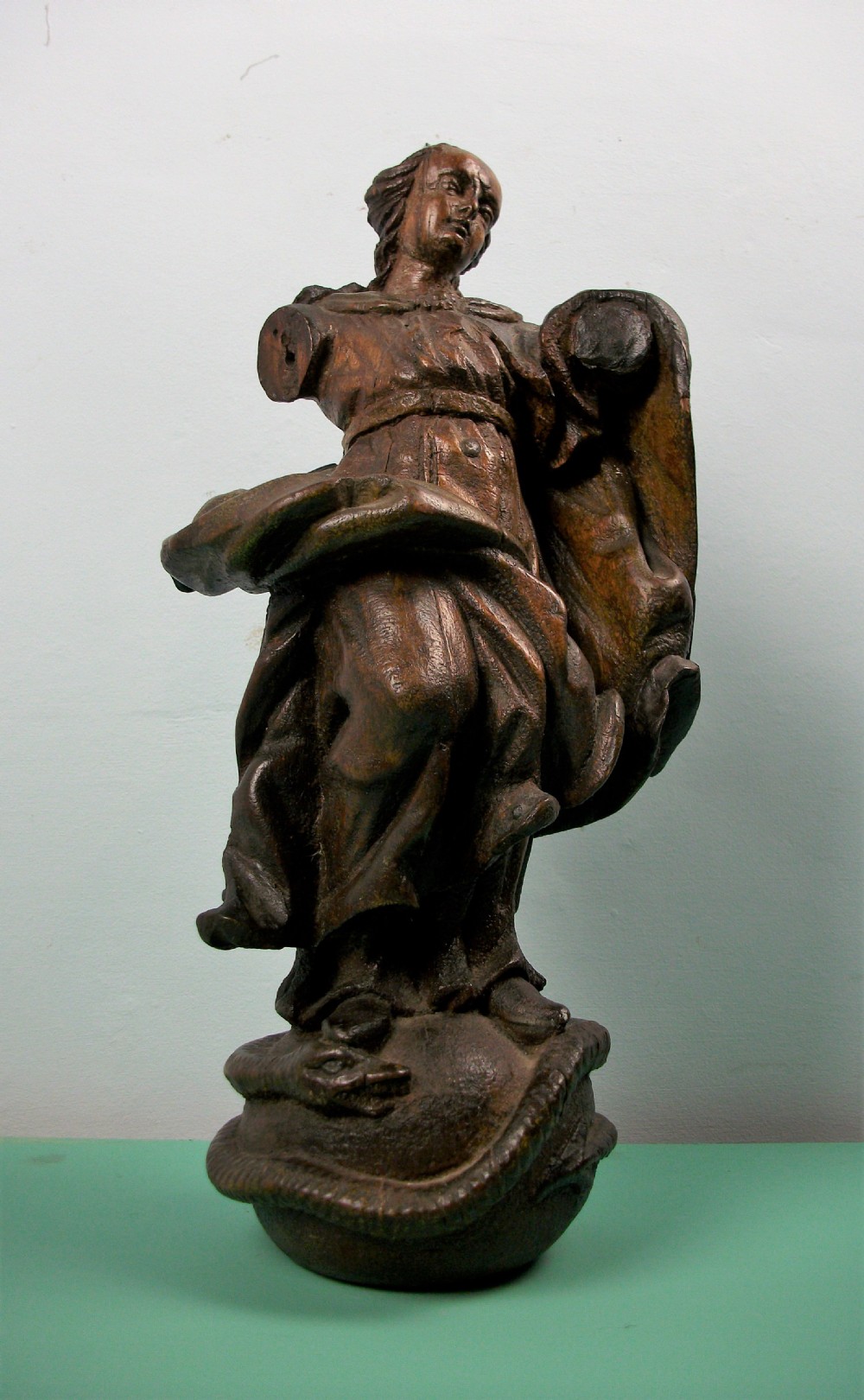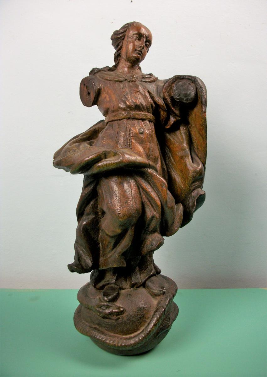 Skulptur Eiche der Madonna aus dem 17. Jahrhundert , italienische Schnitzerei in Eiche