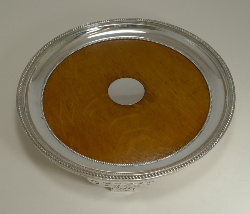 Antike englische kreisförmige Silberplatte mit Eiche Serviertablett