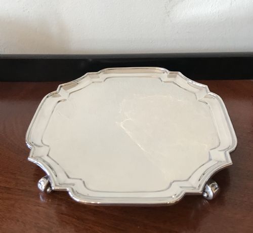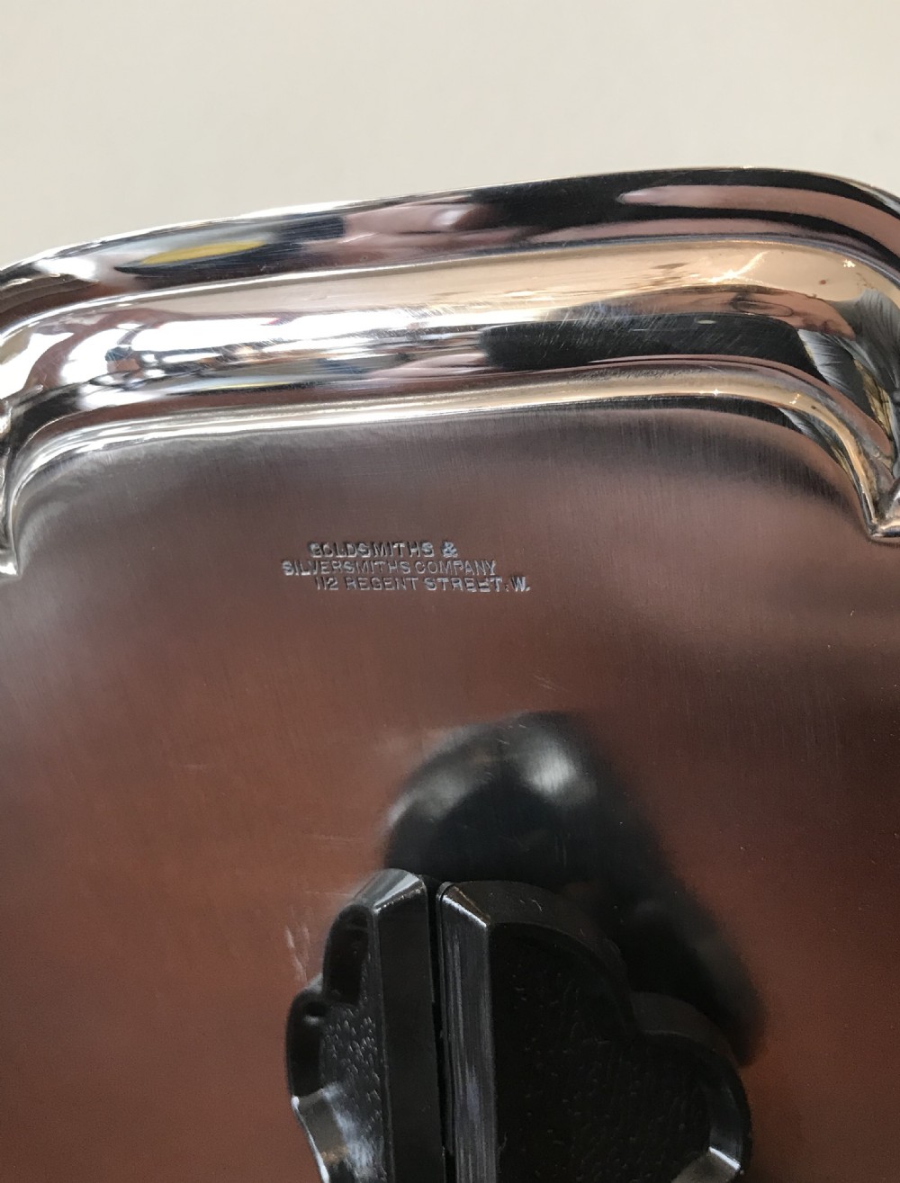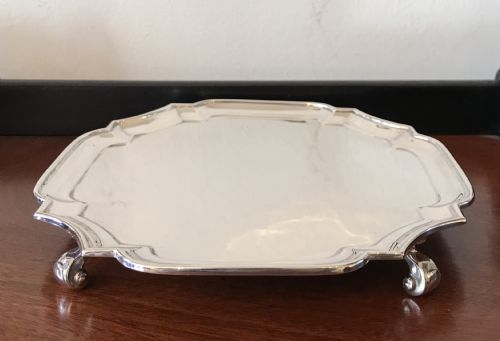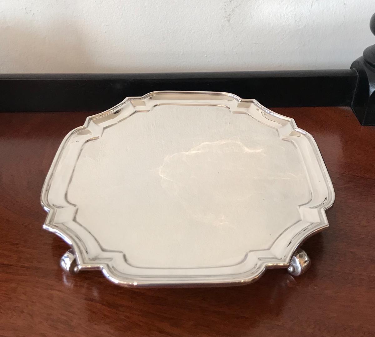 Antikes englisches Silber Tablett Silver Card Tray von Goldsmiths & Silversmiths im Georg II Stil edwardianisch ca 1900