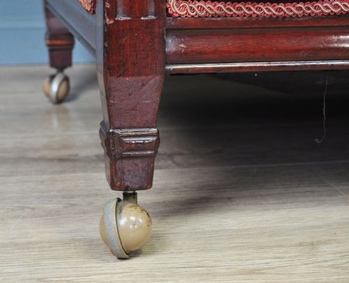 Dieses attraktive edwardianische Sofa befindet sich in gutem Zustand mit alters- und gebrauchsgerechten Markierungen. Das Material zeigt eine gewisse Abnutzung. Der Mahagoni-Rahmen weist einige Gebrauchsspuren und Vertiefungen auf.