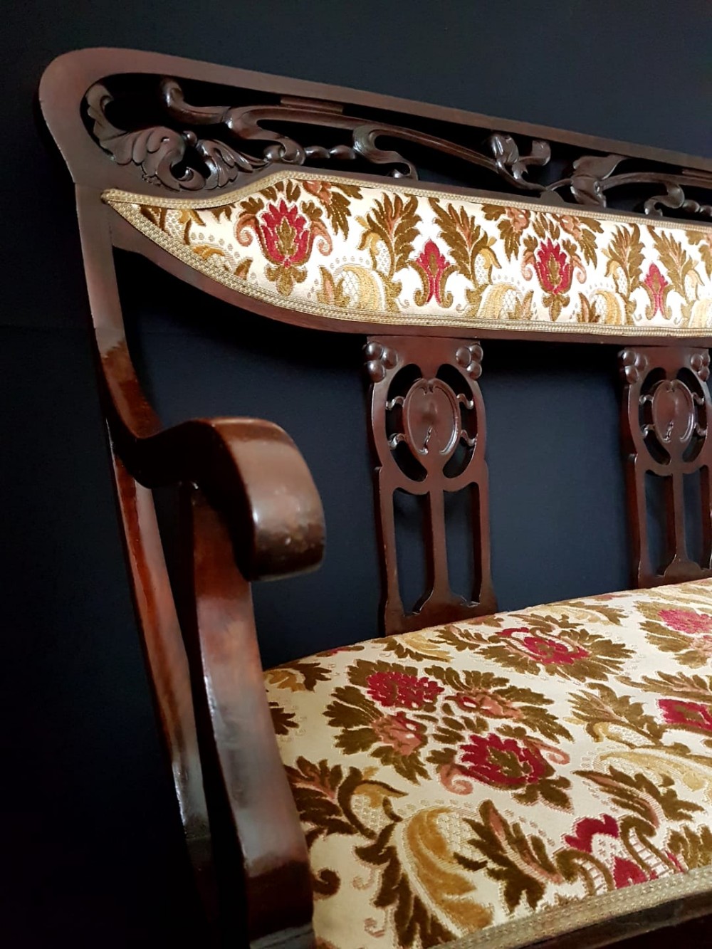 Englisches antikes Jugendstil Sofa Massivholz Couch Mahagoni
