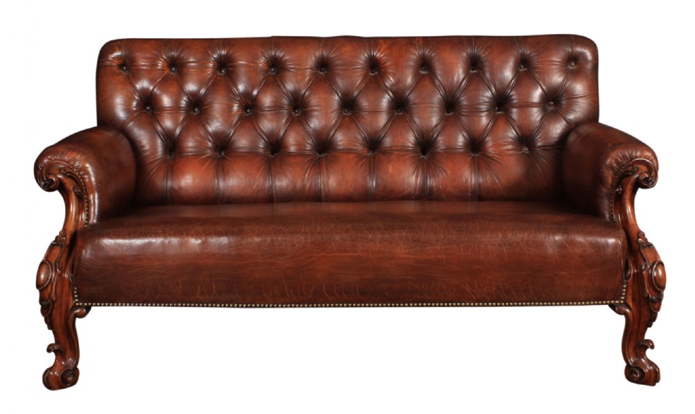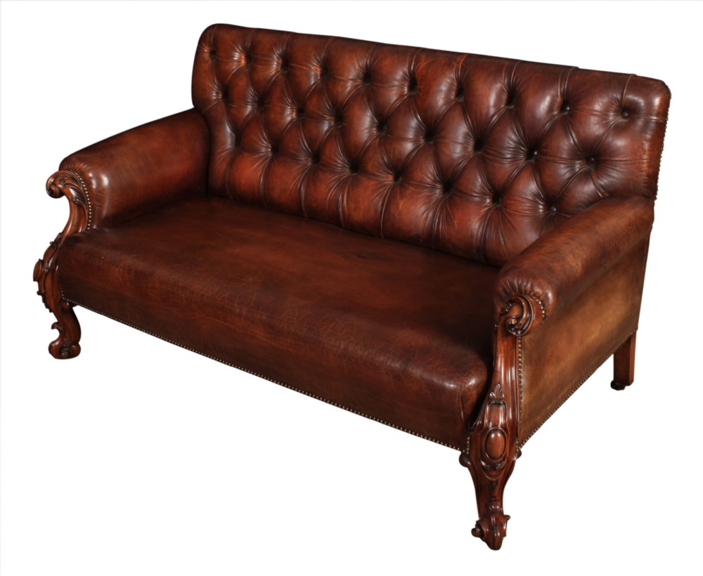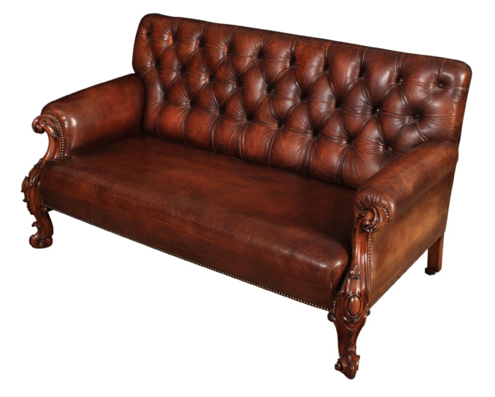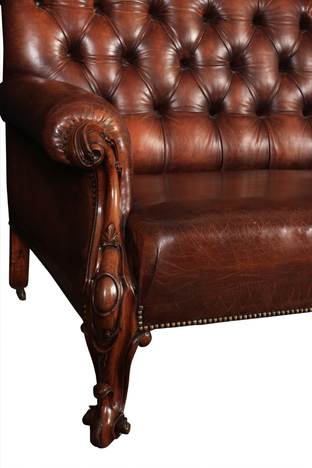 Echtes viktorianisches Mahagoni & geknöpftes Chesterfieldsofa