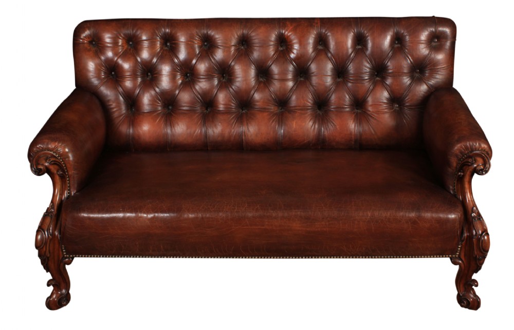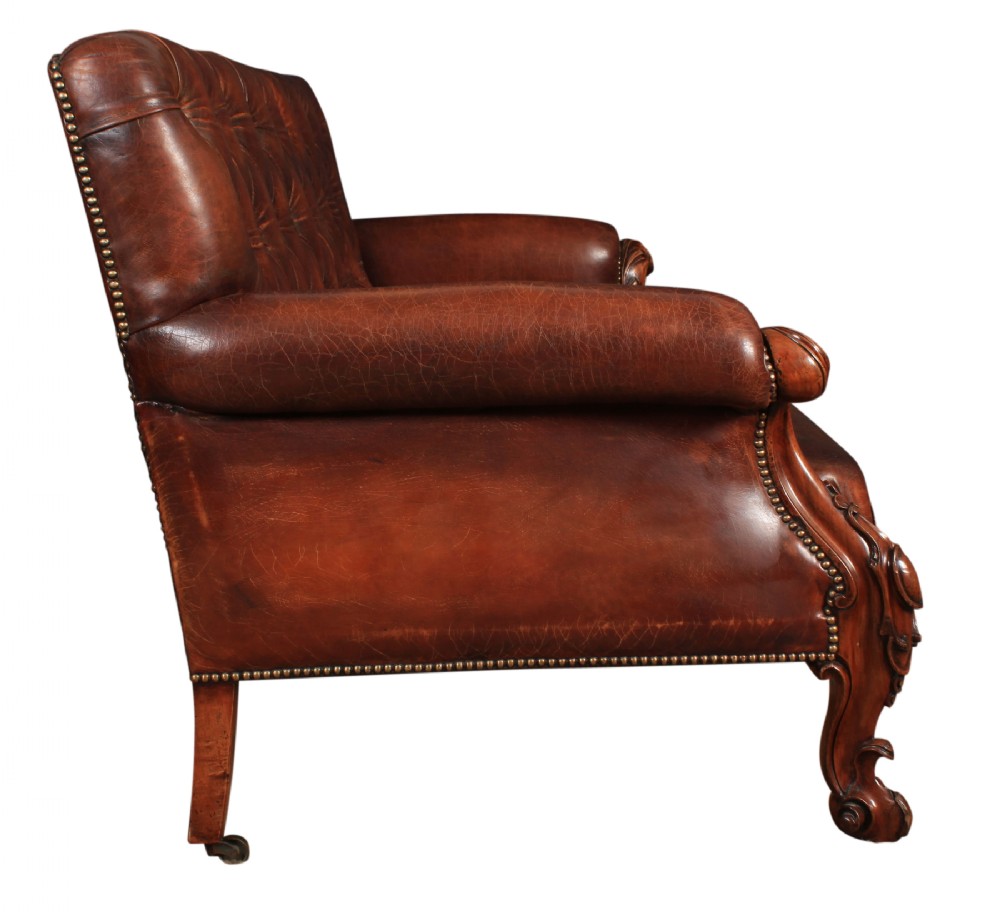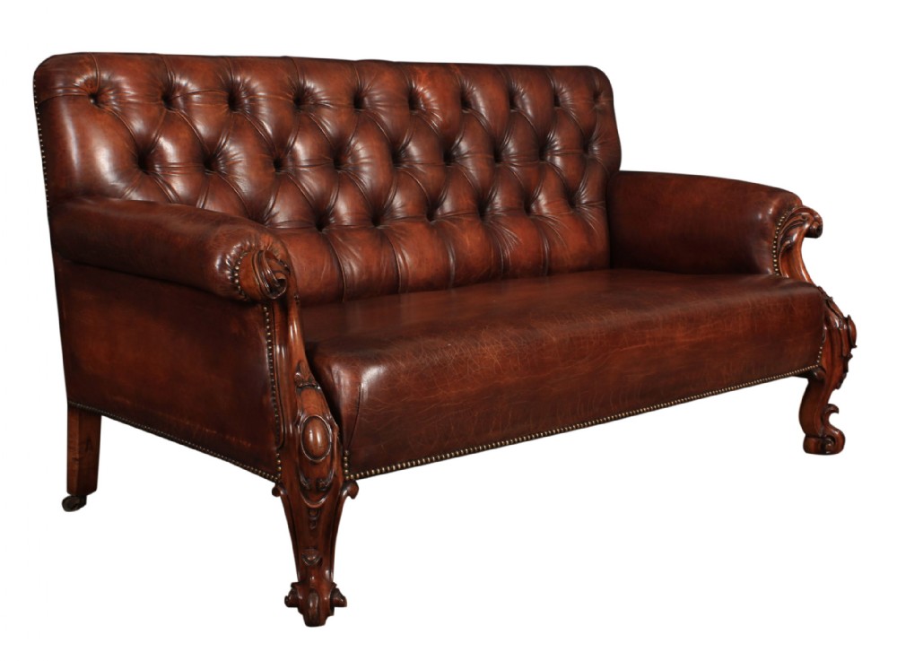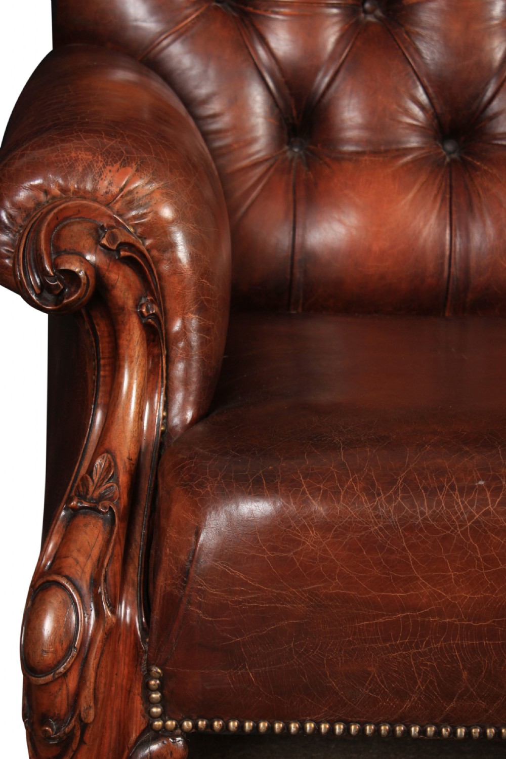 Echtes viktorianisches Mahagoni & geknöpftes Chesterfieldsofa