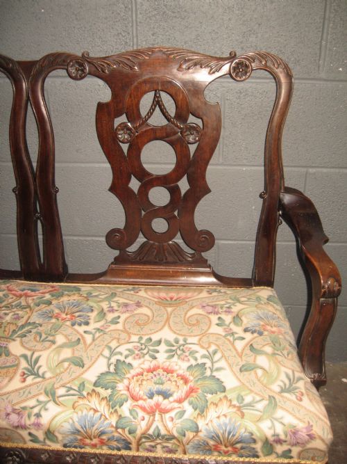 Antikes englisches Massivholz Sofa Mahagoni Stoff Sitzbank