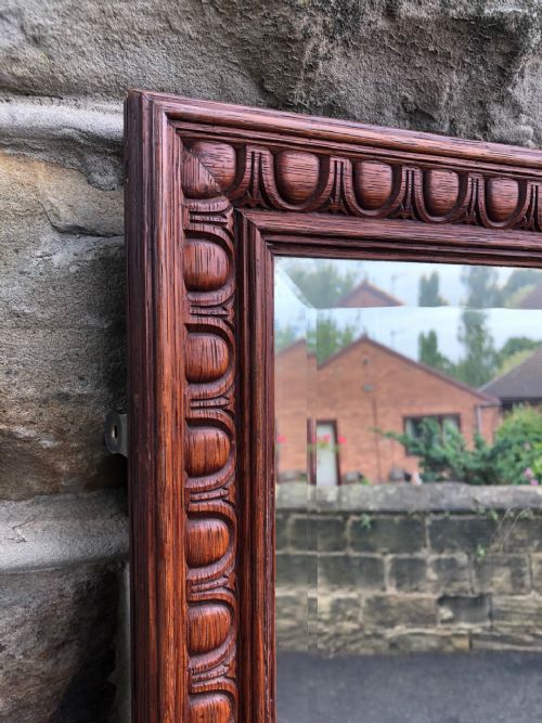 Gut geschnitzter Eichenrahmen mit originalem Plattenspiegel mit abgeschrägter Kante