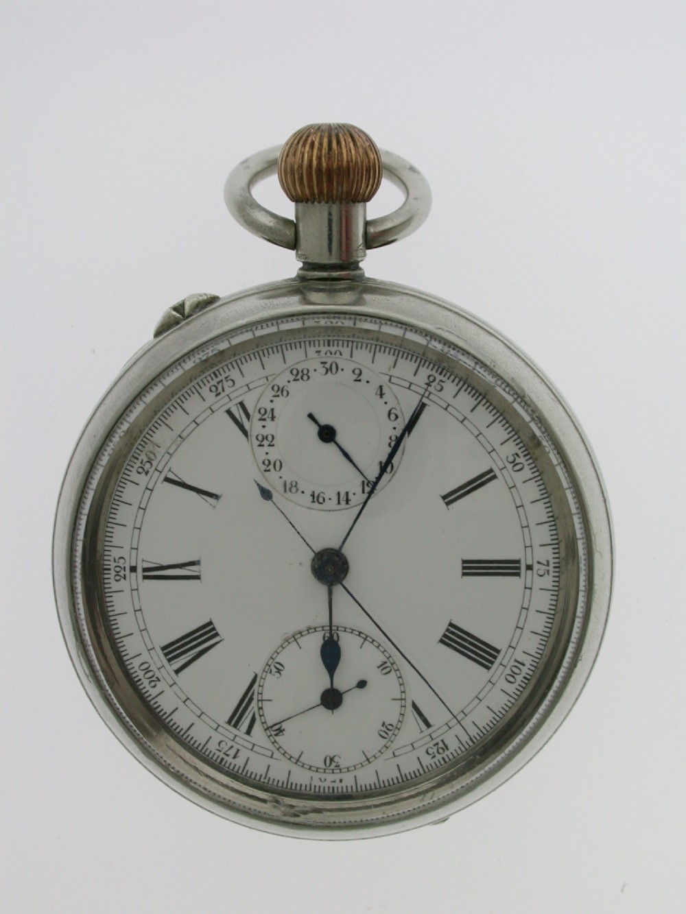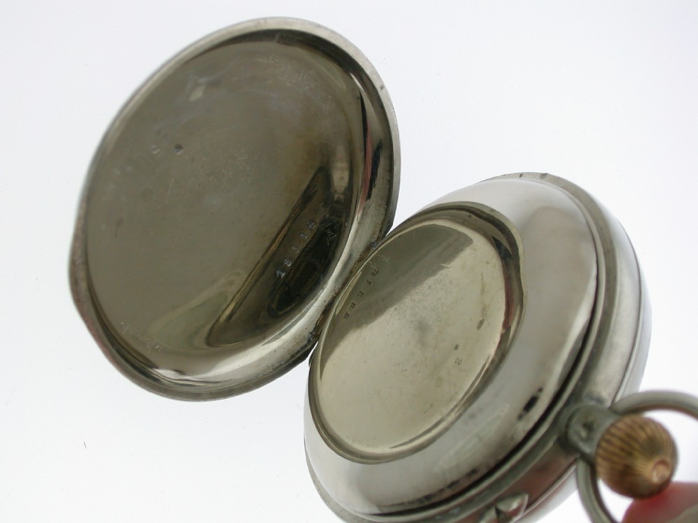 Ziffernblatt: Das weiße Emailziffenrblatt hat schwarze römische Ziffern mit äußerer Minutenteilung. Sie ist in einem guten Zustand. Für eine antike Uhr kann die Genauigkeit jedoch nicht garantiert werden.