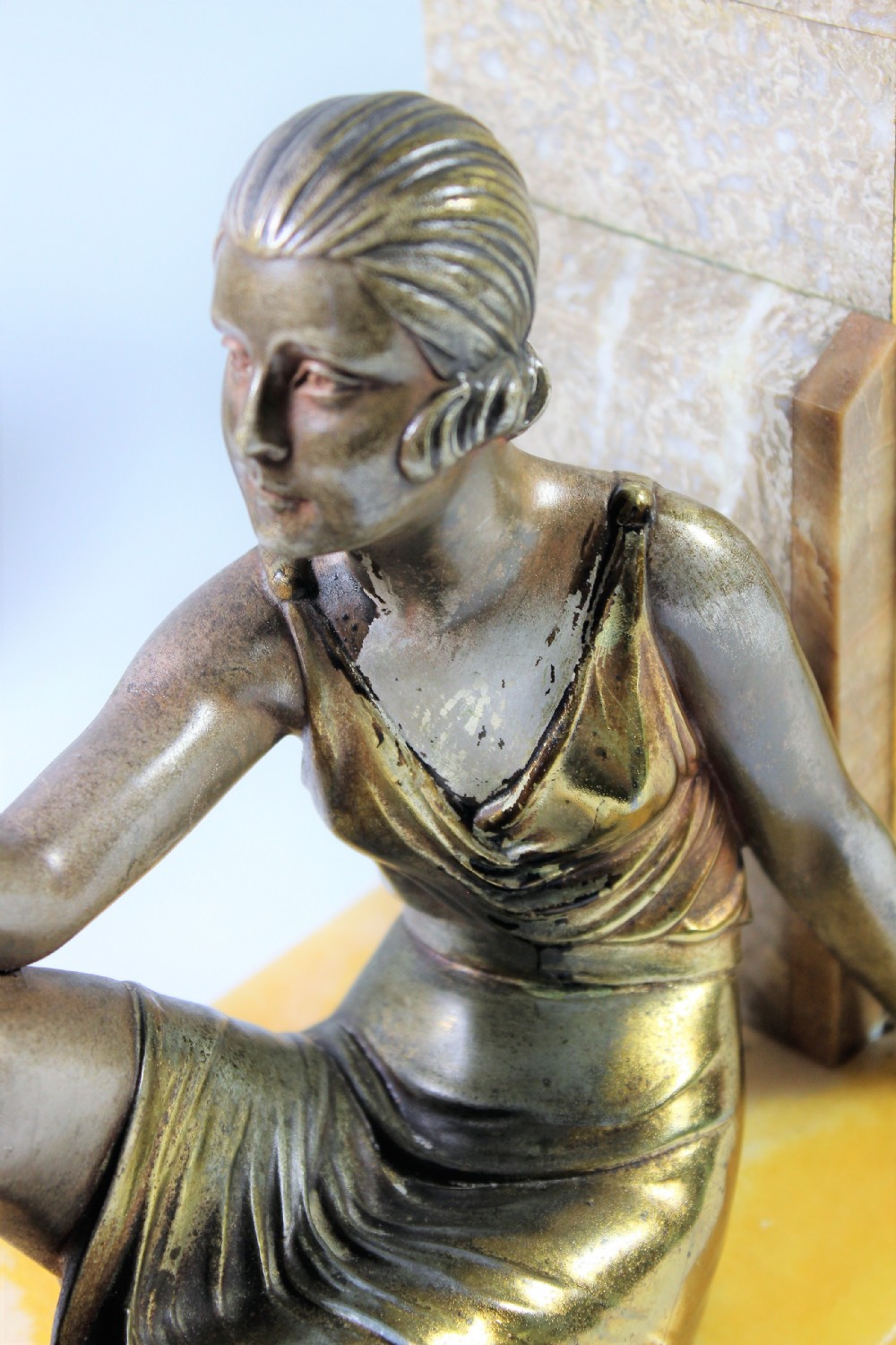 Antike französische Art Deco Uhr Marmor Bronze Figur Chiparus ca 1920