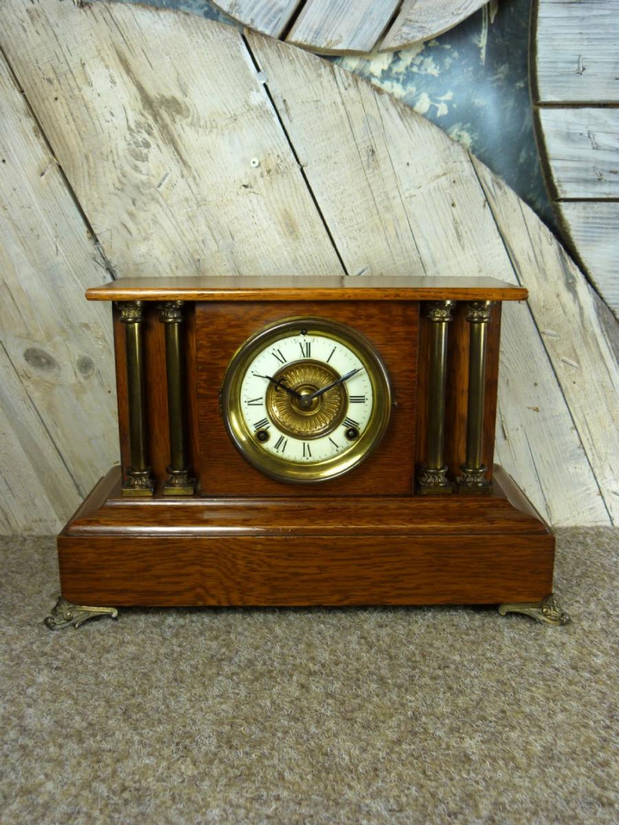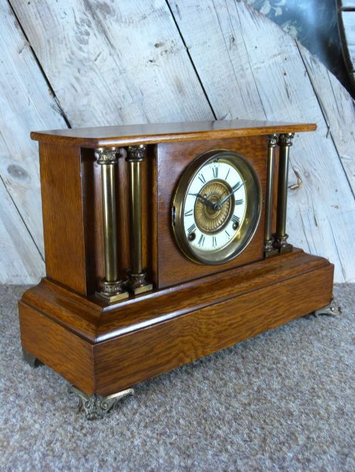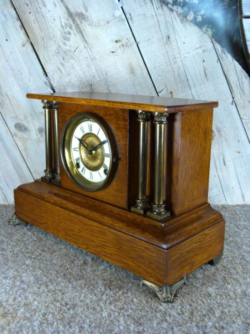 Edwardianische Eichen Kaminuhr englisch original antik 1850