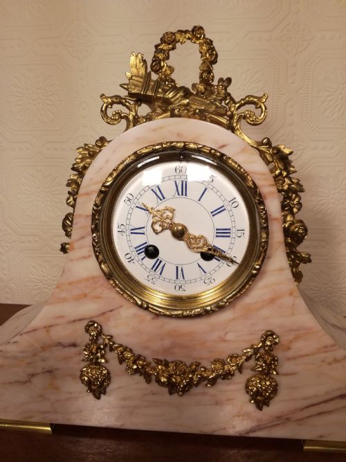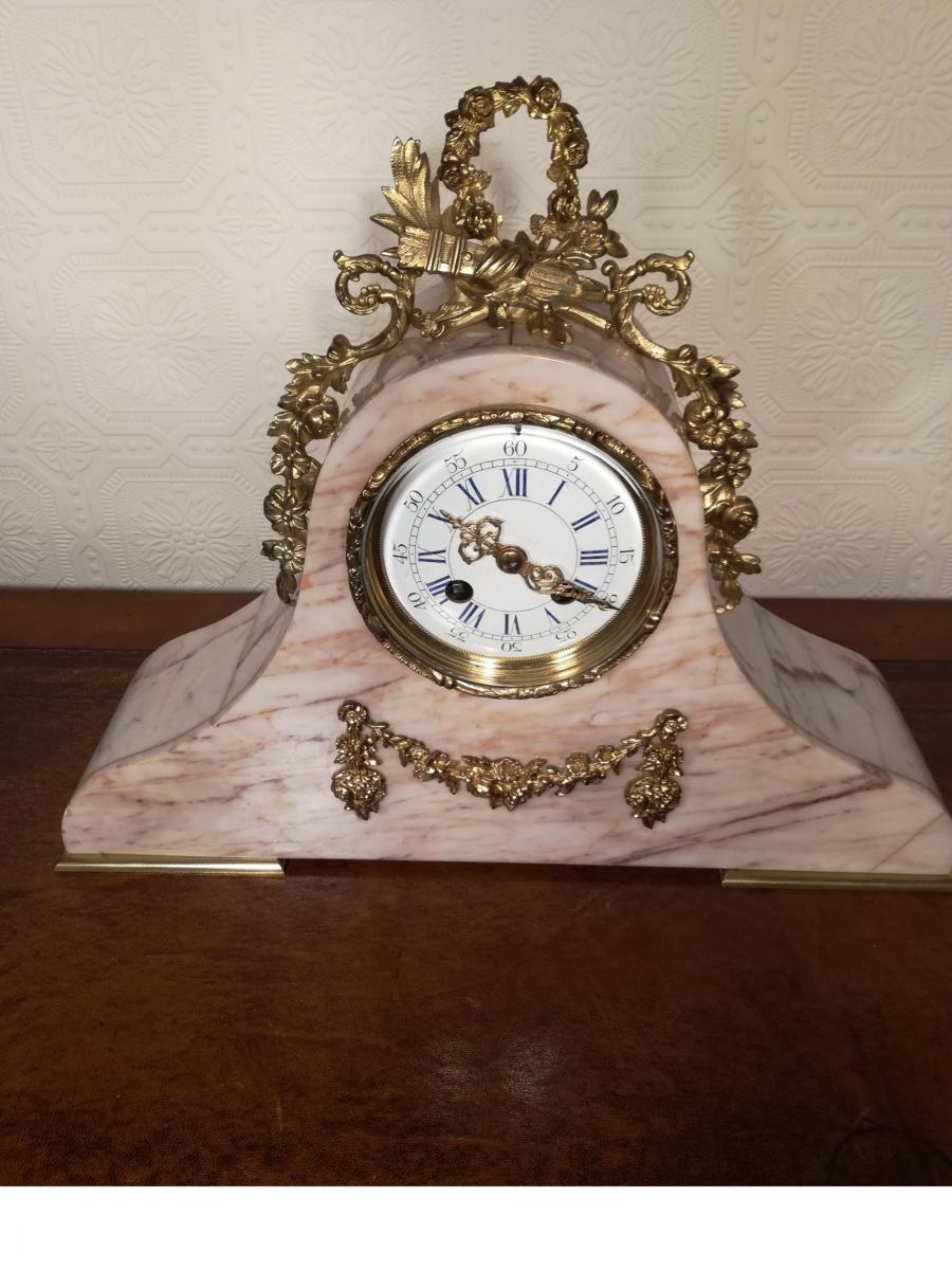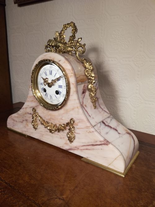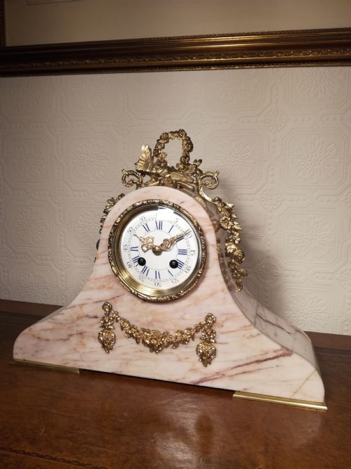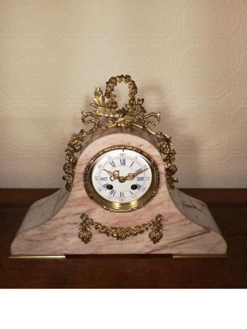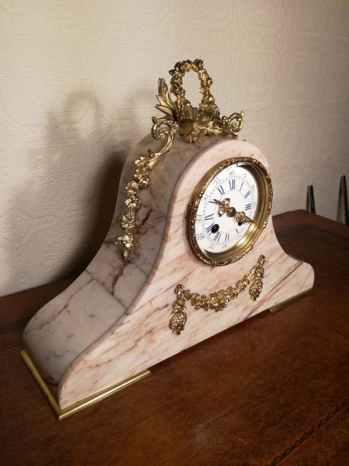Edle antike Kaminuhr Sienna Marmor Rosa Gold französisch 1880