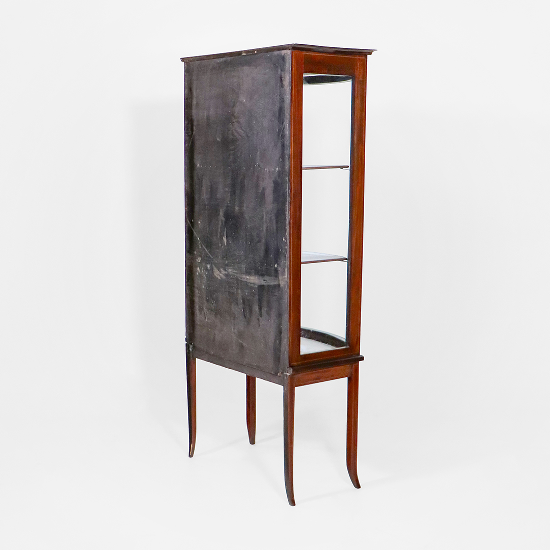 Diese englische Vitrine antik besticht durch ihre zeitlose Eleganz und die hochwertige Verarbeitung. Das fein polierte Mahagoni Massivholz verleiht ihr einen warmen Glanz und eine edle Ausstrahlung. Dank der gläsernen Seiten und Front bleibt der Blick auf Ihre dekorativen Objekte stets frei – ideal für Sammler und Liebhaber schöner Dinge.