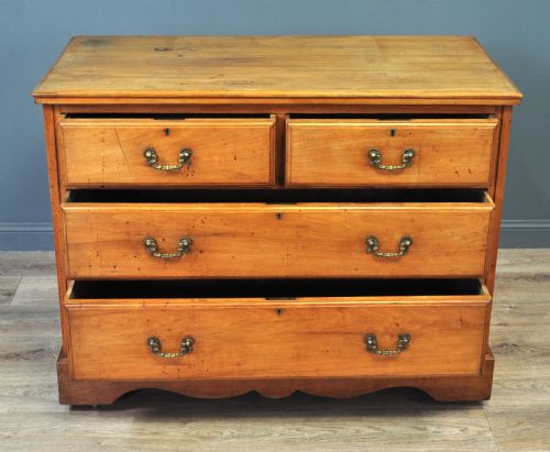 Diese schöne Kommode aus edwardianischer Kiefer bleibt in gutem, festem Zustand mit nur sehr geringen Oberflächenmarkierungen, die dem Alter und der Nutzung entsprechen, einschließlich einiger Vertiefungen und Abnutzungen bis zum Ende auf der Oberseite. Es gibt Hinweise darauf, dass auf der Rückseite Schubladen angebracht wurden und die Oberseite einen leichten Altersspalt aufweist, der über sie verläuft. Es gibt einige kleine dunklere Flecken auf der Vorderseite der Kommodenschubladen.