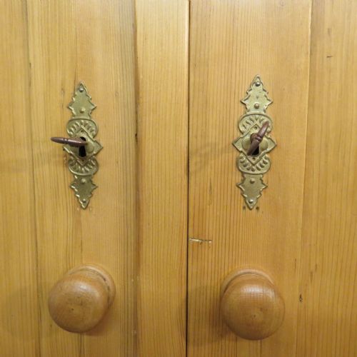 Im Laufe der Jahre wurden einige Änderungen an diesem Schrank vorgenommen, nicht von uns.... und es gibt einige Ersatzteile, wie die Schlösser und einige der Beschläge, die alle unten beschrieben und im Endpreis enthalten sind: