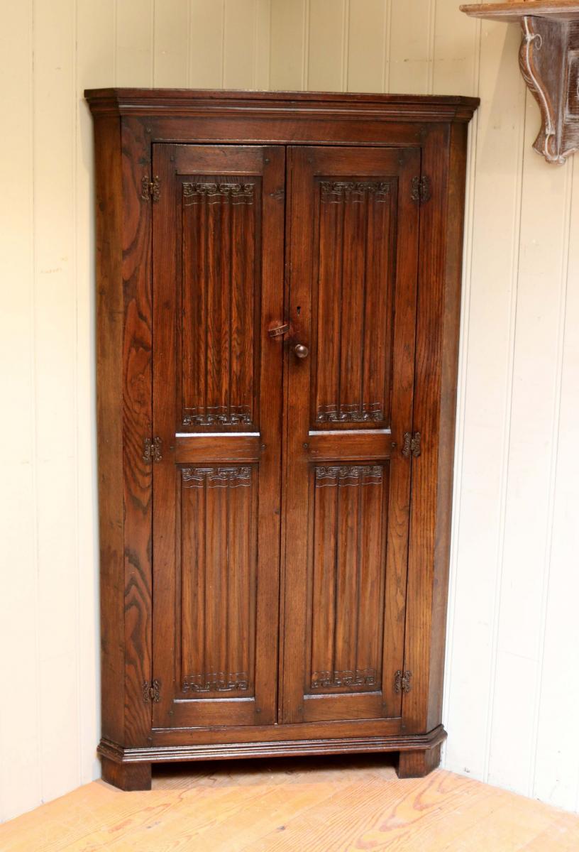 Praktischer englischer antiker Eichen Eckschrank ca 1920