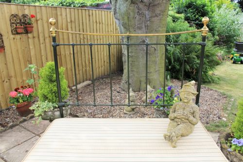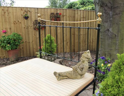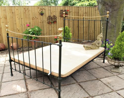 Die Metallverarbeitung ist in einem schönen dunklen Racing-Grün gehalten und kommt mit seinen original eng anliegenden Seiteneisen und einer modernen gepolsterten, feuerhemmenden Klappbasis, so dass einfach eine Standard-Doppelmatratze benötigt wird.