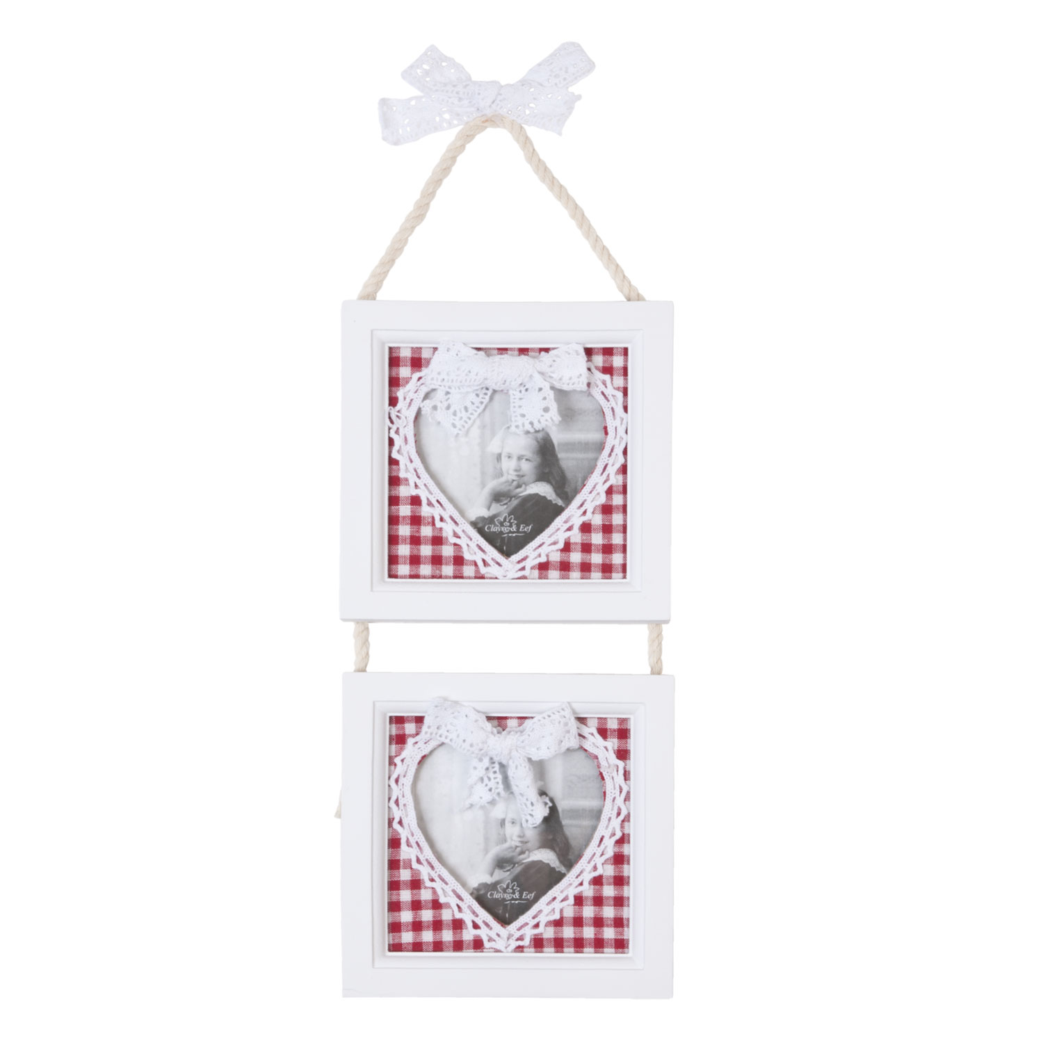 Clayre & Eef Bilderrahmen 2 Herzen kariert rot 9*9cm