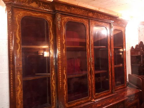 Englischer Vintage Breakfront Bücherschrank Massivholz klassisch