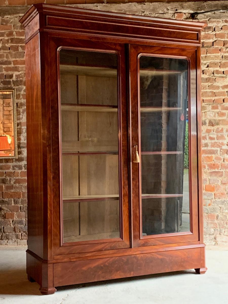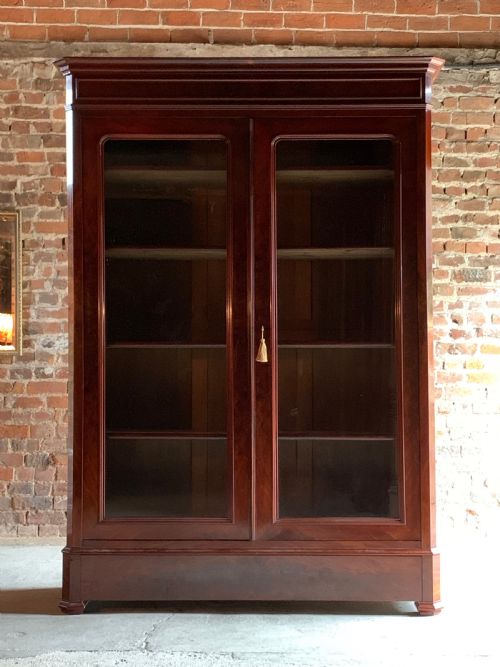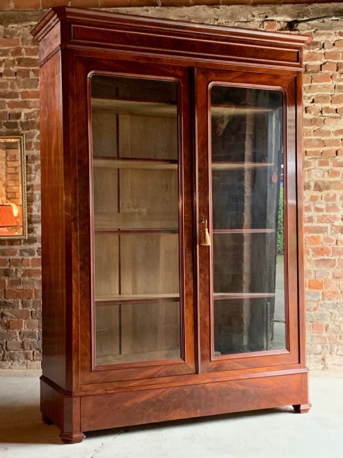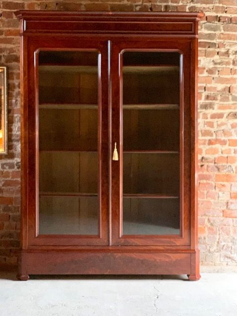 Antiker französischer Mahagoni Bücherschrank Vitrine ca 1875