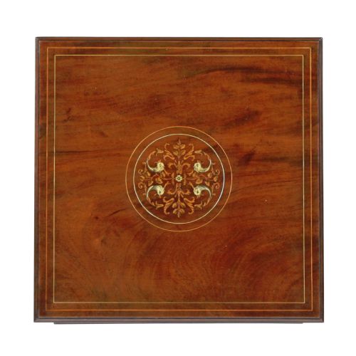 Die Oberseite des Bücherregals ist mit Intarsien versehen.