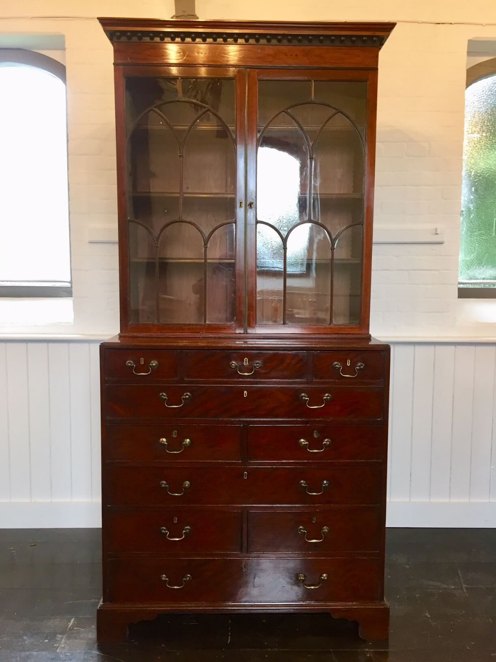 Antikes original georgianisches Mahagoni Bureau Bookcase englisch ca 1780
