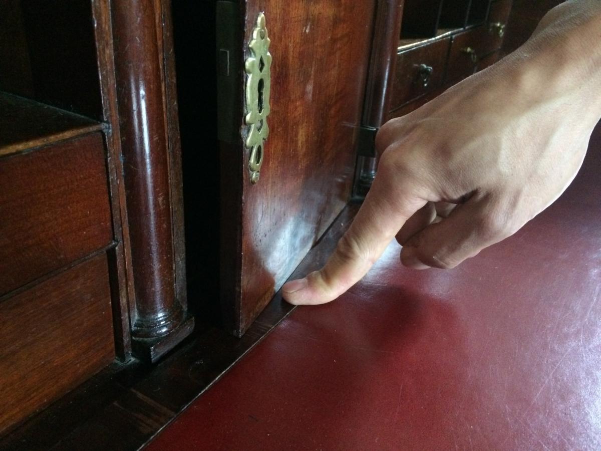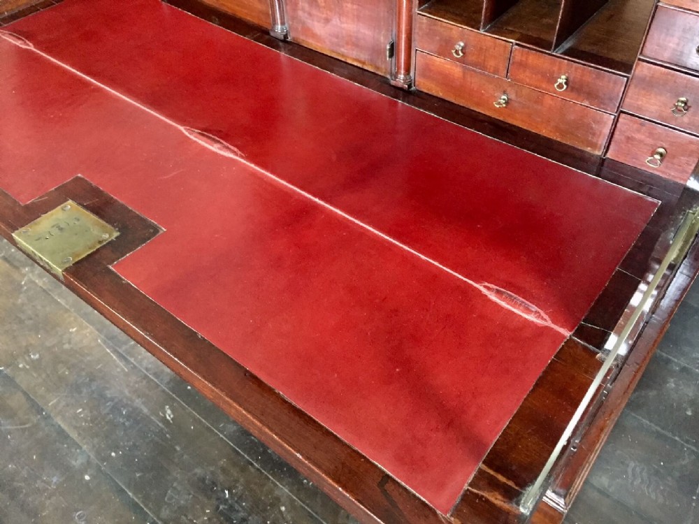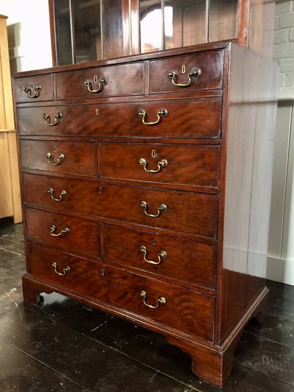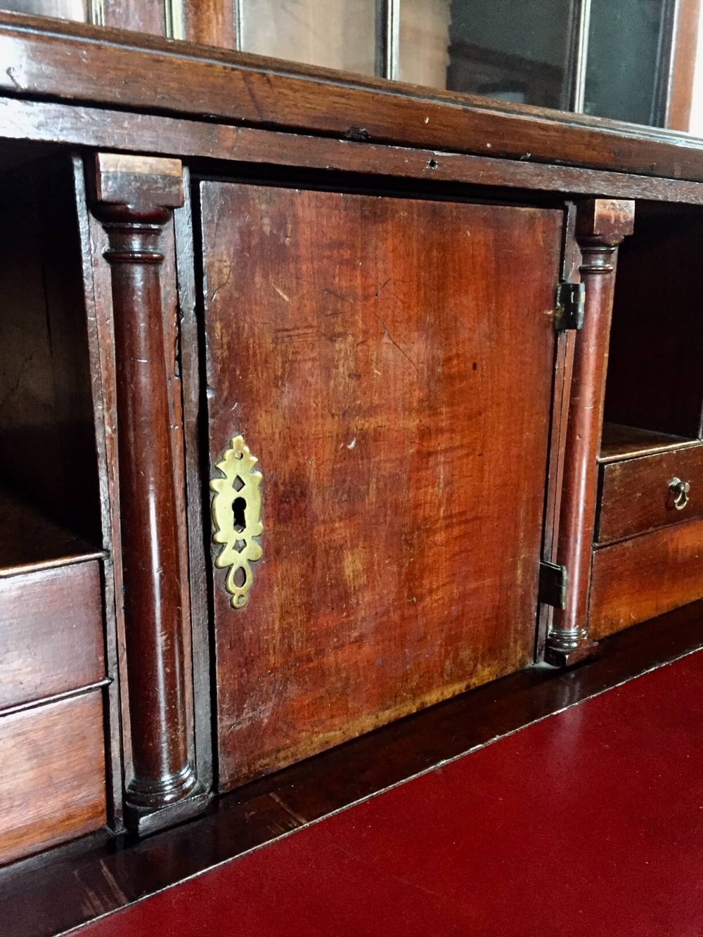 Der verglaste Bücherschrankaufsatz ist etwas neuer, aus der Regency Epoche.