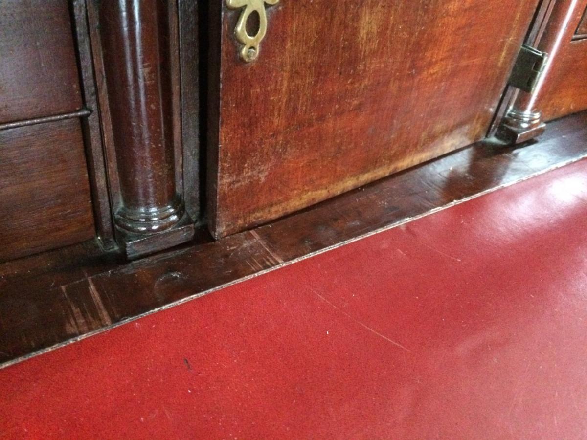 Die Tür des mittleren Schränckchens im Interieur fällt leicht ein (bitte sehen Sie die letzten drei Fotos)