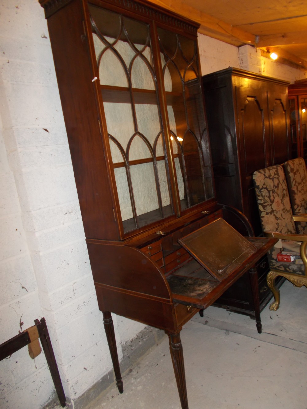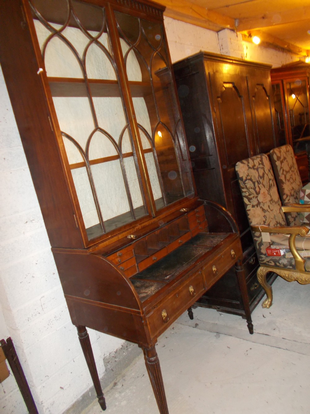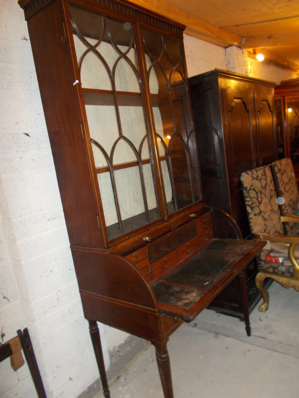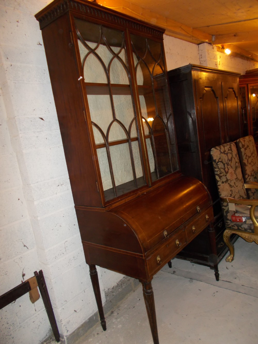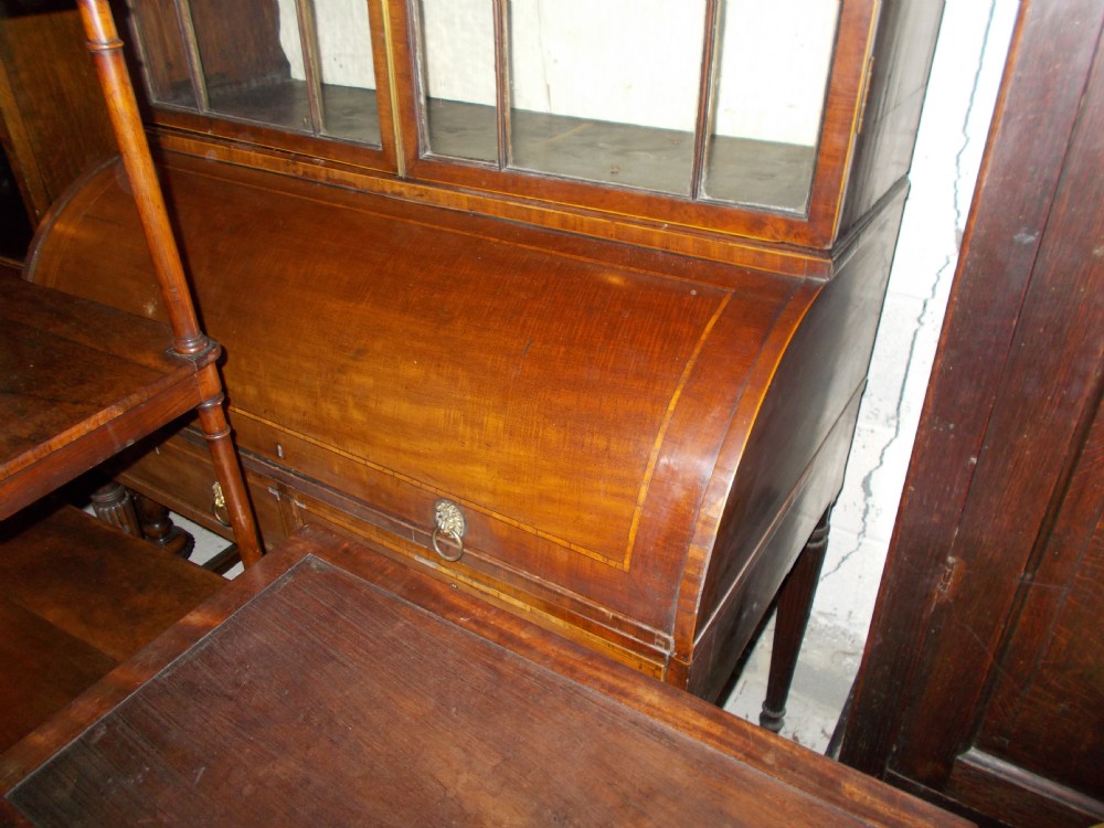 Bücherschrank,Mahagoni mit eingelegtem Zylinder aus dem 19. Jahrhundert