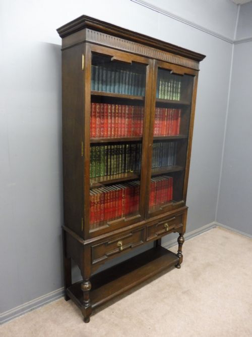 Englischer antiker Massivholz Bücherschrank Eiche Bücherregal