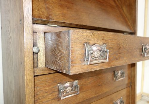 Schmaler Arts & Crafts Bücherschrank aus Eichenholz massiv
